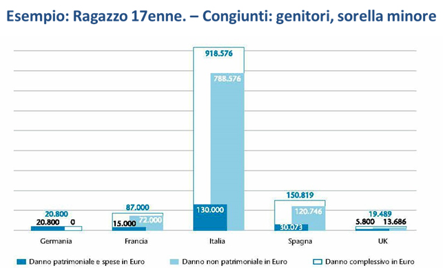 È di fondamentale importanza, in proposito, riuscire ad individuare modelli risarcitori il più possibile uniformi tra i vari Stati membri, siano essi inclusi in una legislazione ovvero determinabili in base a determinati parametri medico-legali. Prendendo ad esame il solo caso morte, alcuni Paesi offrono una compensazione maggiore per i sinistri da cui è derivata la morte ed una minore quando si siano verificate lesioni gravi, mentre in altri Paesi è vero il contrario. In Paesi come Italia e Spagna i “danni non patrimoniali” rappresentano il fattore principale di danno (risarcimenti comunque molto più alti in Italia). In particolare in Spagna gli aventi diritto “a carico” della vittima - ove dal sinistro sia derivata la morte - ricevono una pensione statale che non è inclusa nel conteggio del danno patrimoniale e per la quale non è prevista rivalsa nei confronti del civilmente responsabile o del suo assicuratore In Germania tale tipologia di danno risulta assente salvo circostanze del tutto particolari (ad es. decesso avvenuto in presenza di uno o più congiunti, una sorta di “danno da shock“; casi in cui la reazione al lutto ecceda il “normale” dolore, causando un danno da “stress post-traumatico”)