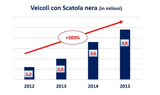 Come dimostra il grafico di seguito riportato, dal punto di vista della diffusione nel mercato, la scatola nera è caratterizzata da un trend crescente.